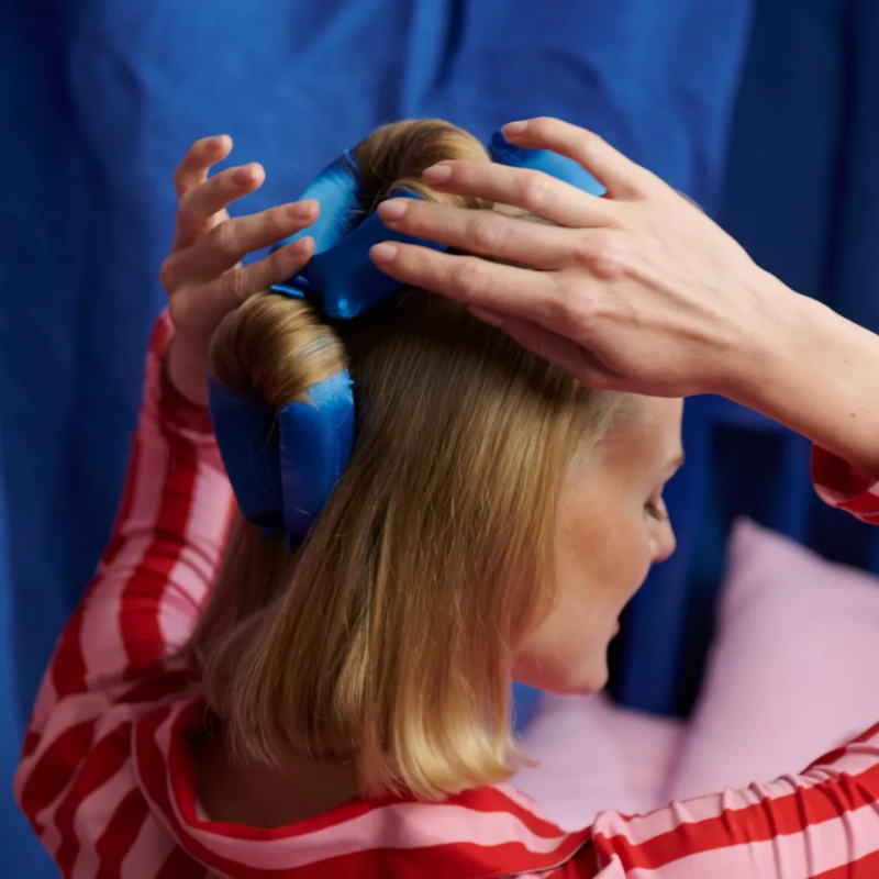 Twist the Heatless Curler into dry or slightly damp hair and secure it under the Satin Sleeping Cap—it protects your hair overnight and lets you wake up with soft, effortless waves.