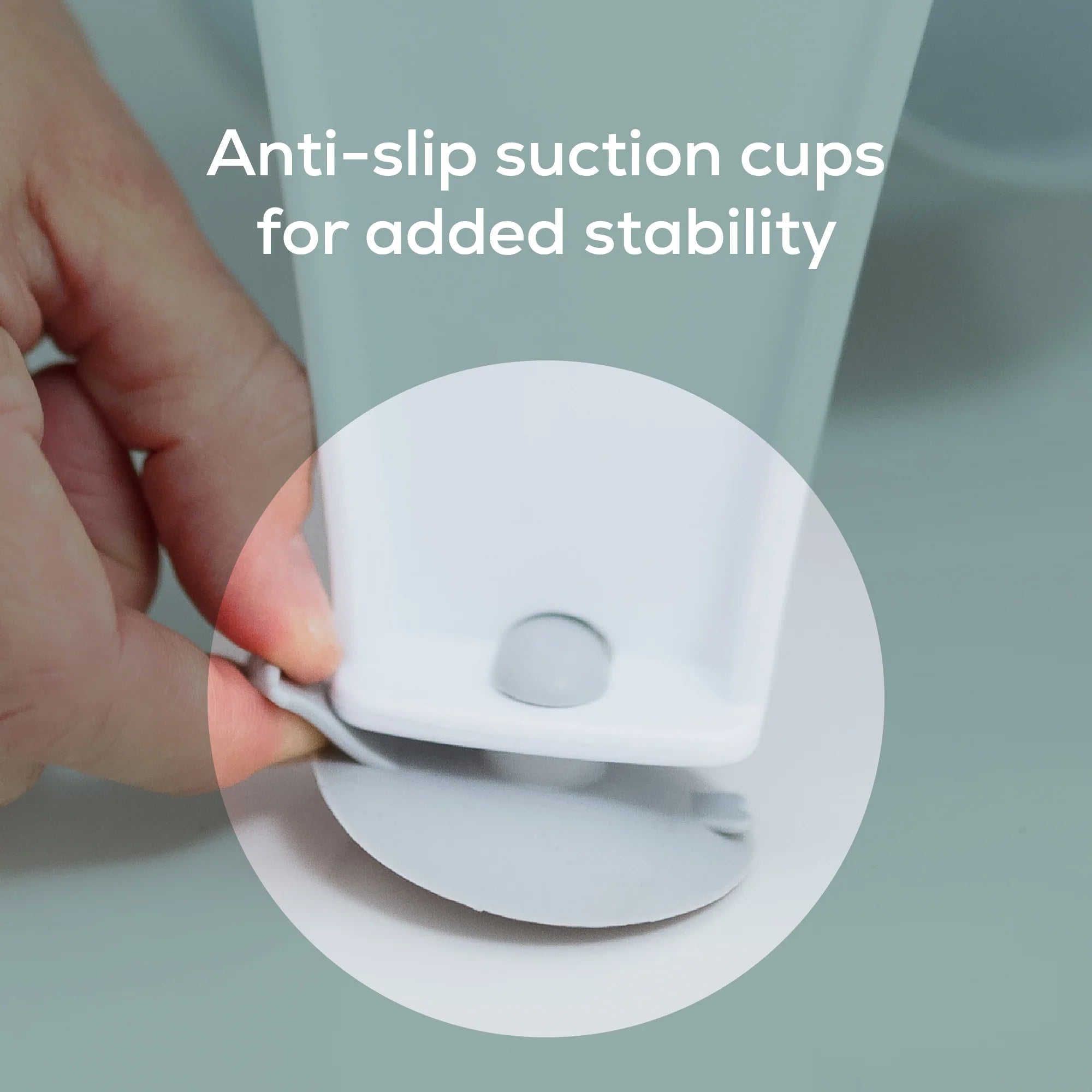 - Use directly in the bathtub or shower - Fits nicely into your bathtub or shower and is securely held in place using extra strong suction cups. Once you’re done, simply release the suction cups using the handy tabs.