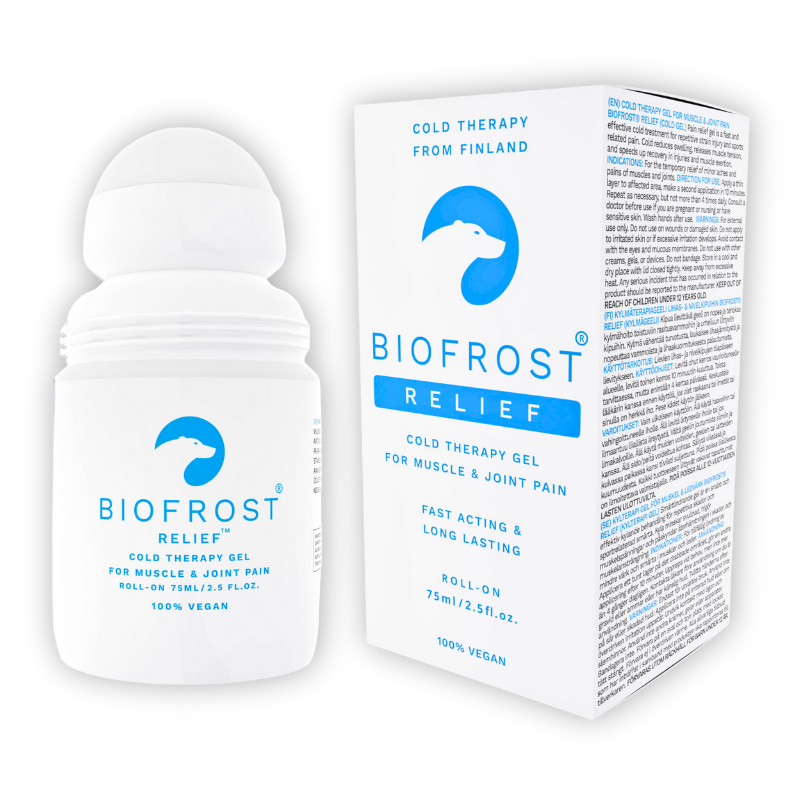 Whether you’re managing arthritis pain, muscle exertion, neck and shoulder tension, or sports injuries, Biofrost® Relief™ provides effective, natural cold therapy that’s safe for long-term use. 100% vegan and free from drugs or parabens, it can be used alone or alongside prescription pain treatments — without risk of systemic side effects.