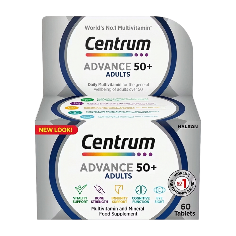 Getting older doesn’t mean you have to slow down, but it may mean you need to adjust your nutrient levels to respond to your body’s changing needs. Centrum Advance 50+ is specially crafted to support your body at age 50 and beyond. It’s made with high-quality ingredients and essential vitamins and minerals to help support your heart14, bones5 and eyes13. Centrum Advance 50+ is backed by over 40 years of nutritional science from the world's No.1 multivitamin brand.