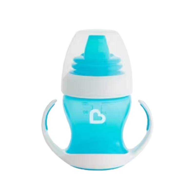 Moving to a sippy cup is an exciting first step toward drinking independence, but it can be confusing for bottle-fed babies. Make the change easier with the spill-proof Gentle™ Transition cup! The soft, patented spout design is extremely flexible and gentle on babies’ sensitive gums, and the removable handles make it easy for them to take the lead. When it’s time to leave the bottle behind, this spill-proof trainer is the perfect first sippy cup to introduce. Cheers to hitting those milestones!