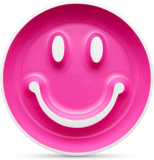 - Set includes (1) smiley-face shaped suction plate and (1) scooper spoon to aid in self-feeding.