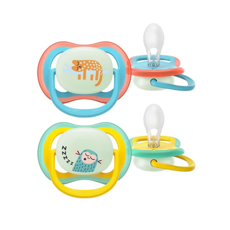 Soothing and breathable with large airholes. 9 out of 10 parents agree: Philips Avent ultra air soothers are comfortable for my little one.** And they glow in the dark, so comfort and relief are always easy to find. Now 80% plant-based.*