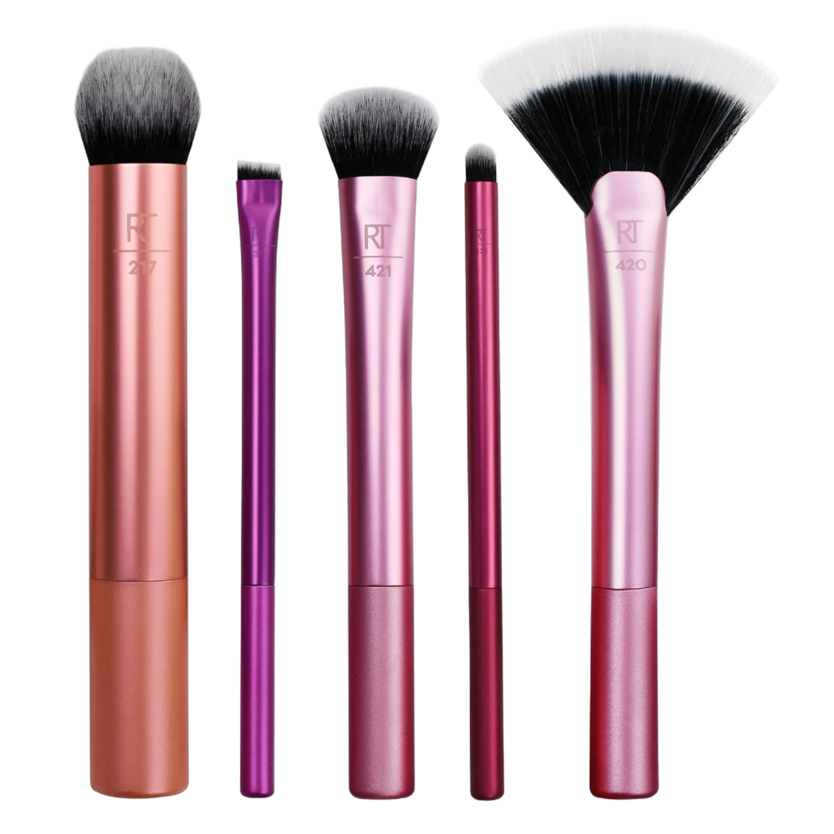 Build your brush collection with the Real Techniques Artists Essentials Set. Featuring five brushes for eyes, lips and face, the set contains everything you need to create a flawless makeup look. The brushes are crafted from premium synthetic fibers that feel soft on the skin and blend seamlessly. The versatile brushes work with powder, liquid and cream products offering multipurpose benefits to fit all your beauty needs.