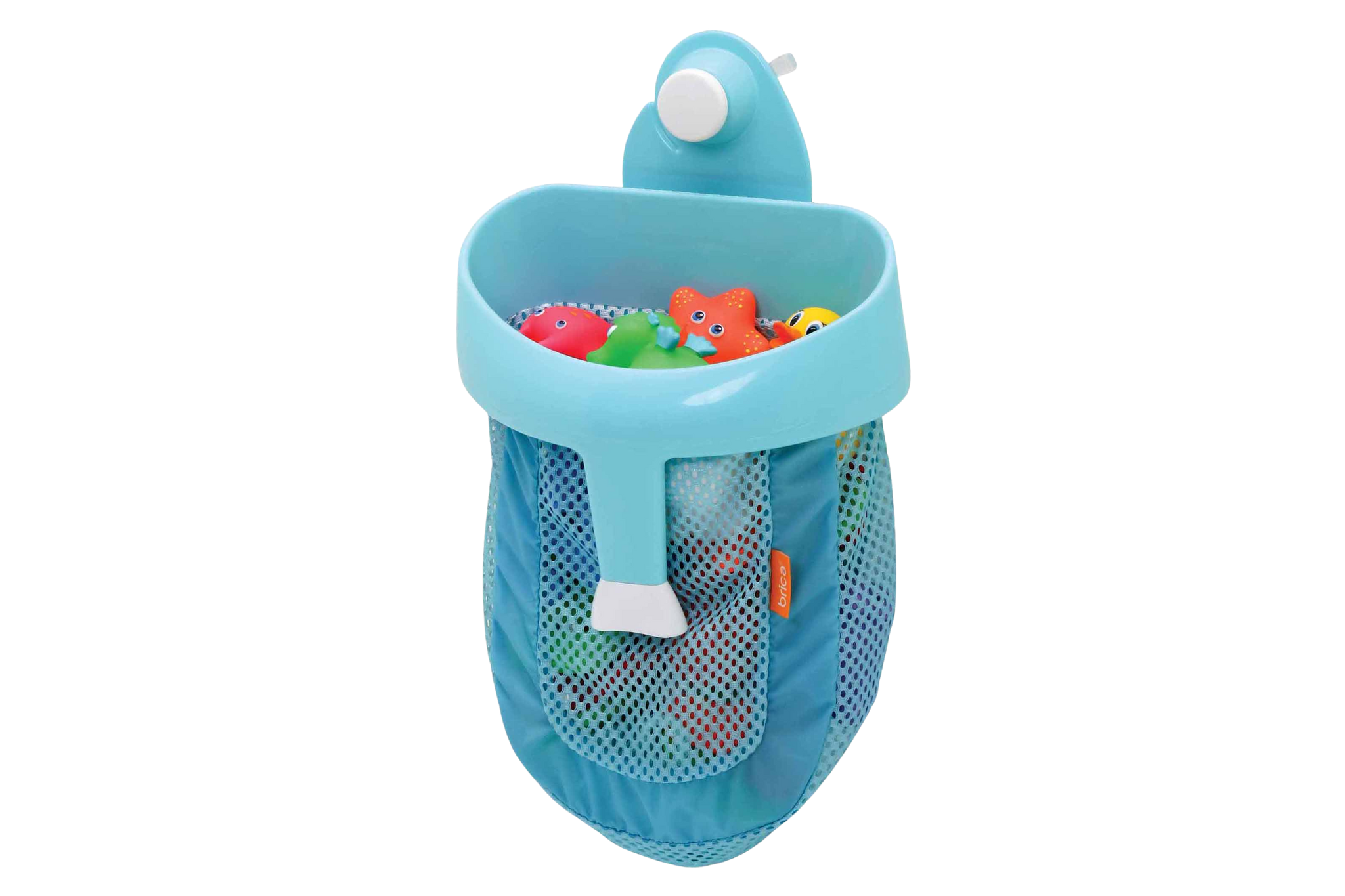 - Munchkin Super Scoop™ Bath Toy Organizer – Bath toy storage with wide scoop and mesh net for drainage. Suction-cup mount keeps toys tidy and dry.